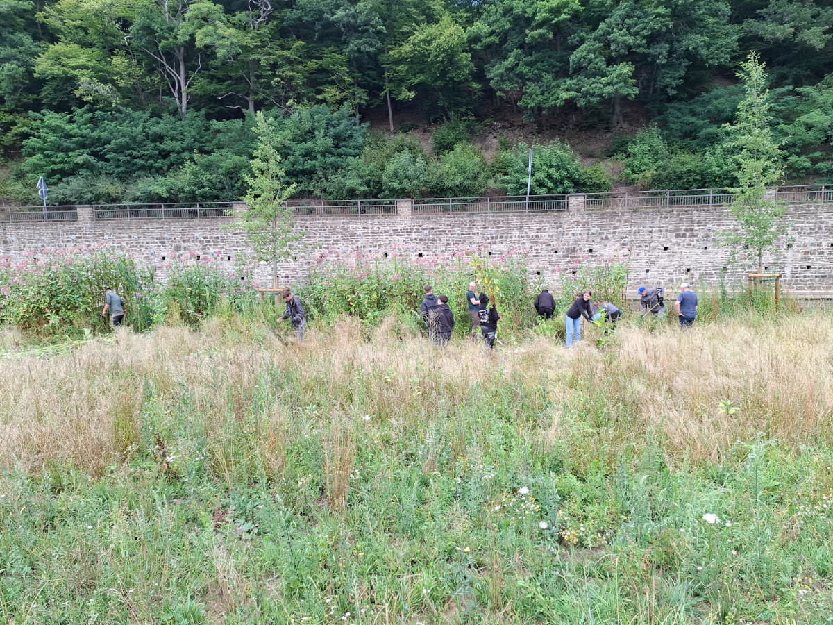 Gemeinsame Aktion gegen das Indische Springkraut am Ahrufer in Fuchshofen