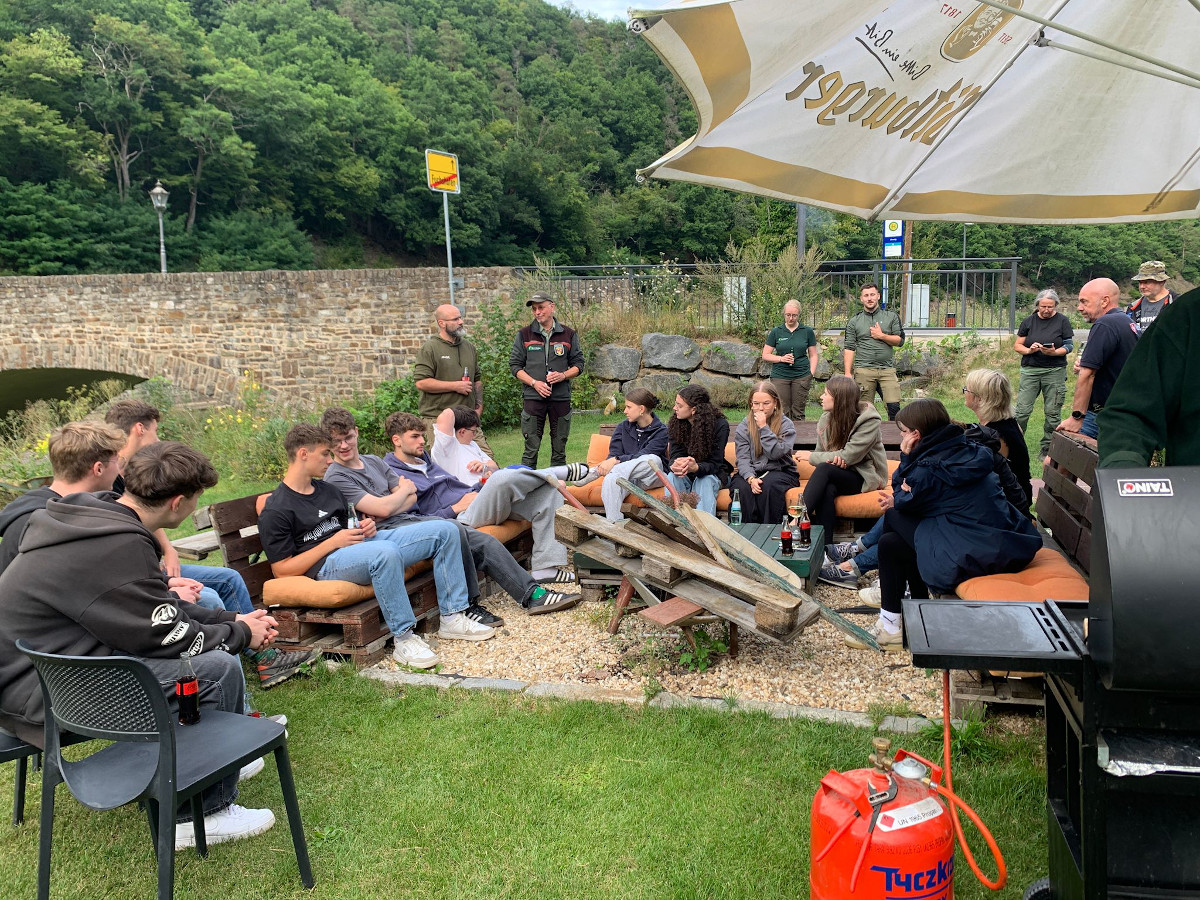 Dort bot sich insbesondere den Jugendlichen die Möglichkeit, bei kühlen Getränken und einem reichhaltigen Imbiss mit Einheimischen ins Gespräch zu kommen. Viele nutzten die Gelegenheit, um sich aus erster Hand über die Erlebnisse und Auswirkungen der Flutkatastrophe im Ahrtal im Jahr 2021 zu informieren.